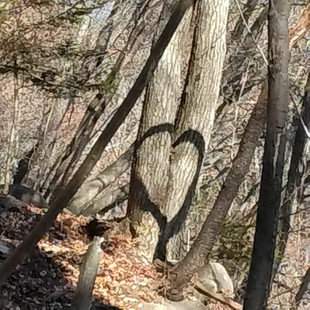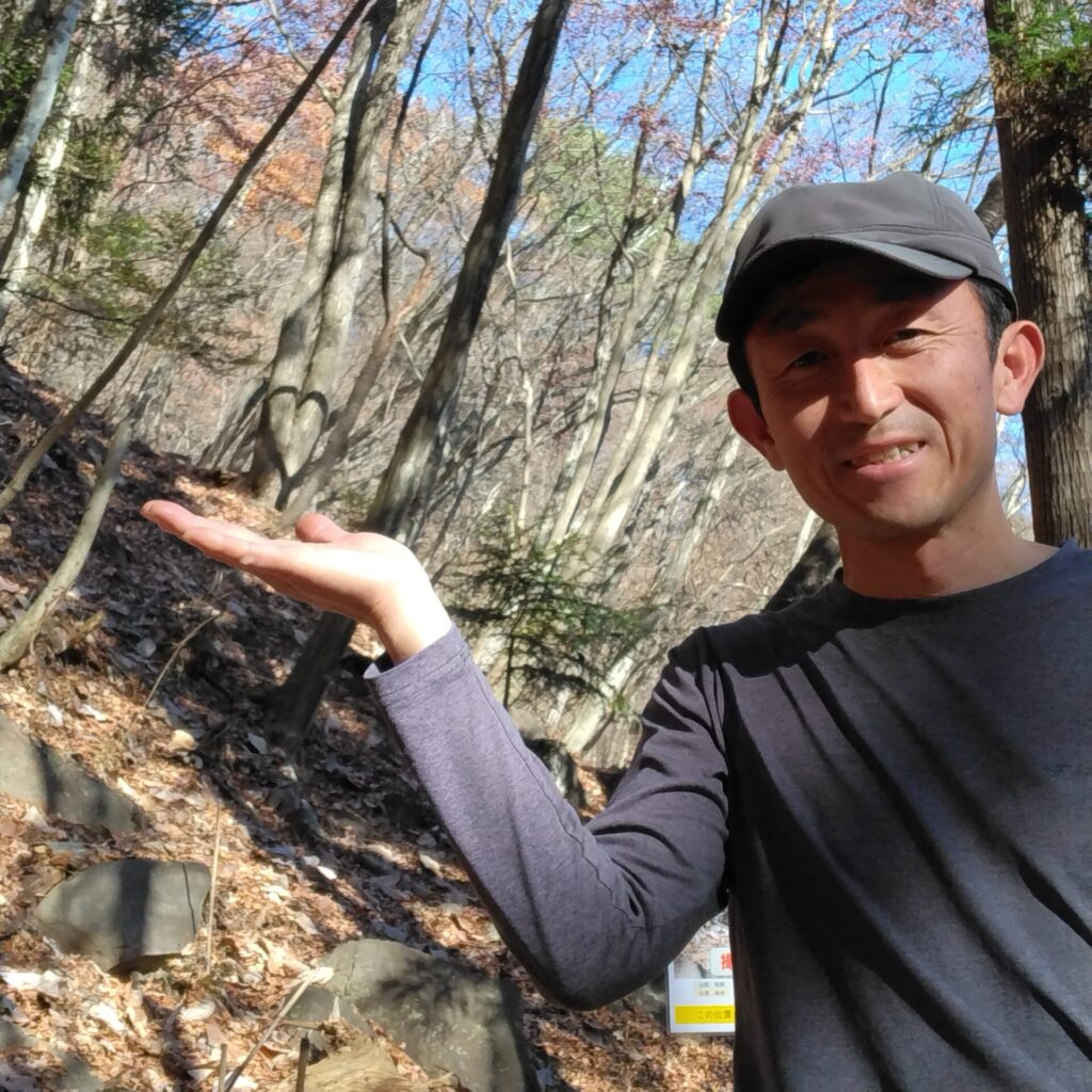 この時期、ある時間に現れるハートを見に、中之条町の嵩山(たけやま)に行って来ました。道の駅霊山たけやまの駐車場から約15分ほど登山道を登ると、現れるポイントにちゃんと看板がありました。看板によると現れるのは12月頭から1月中旬、13:30前後のみ。時間に近づくと続々と人が登ってきます。そしてこの看板を立てた地元の方が説明してくれて、皆さんの写真も撮ってくれました。地元愛がすごいですね。