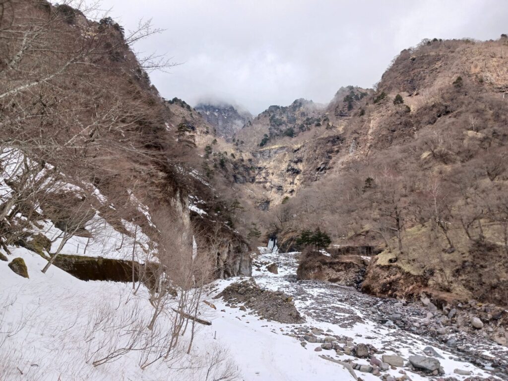いよいよ雲竜渓谷に入ります。雪が少ないため、渡渉を繰り返します。